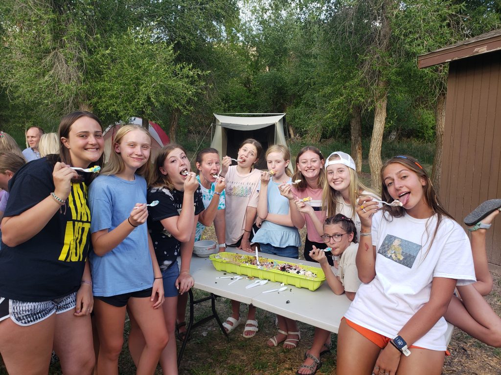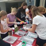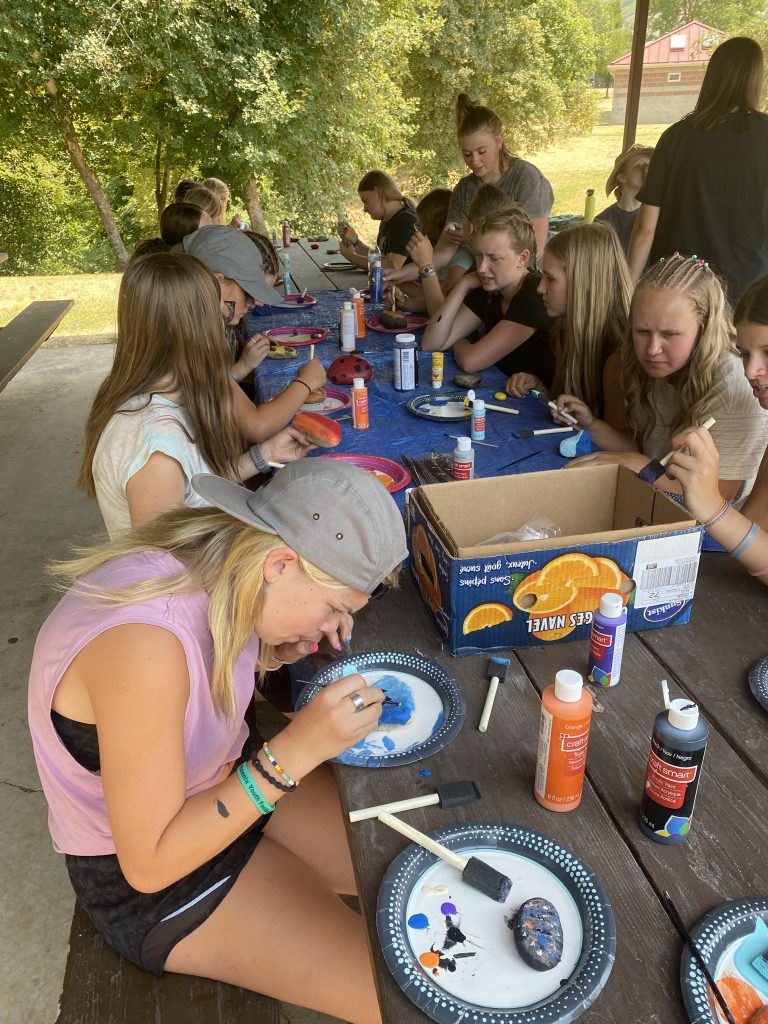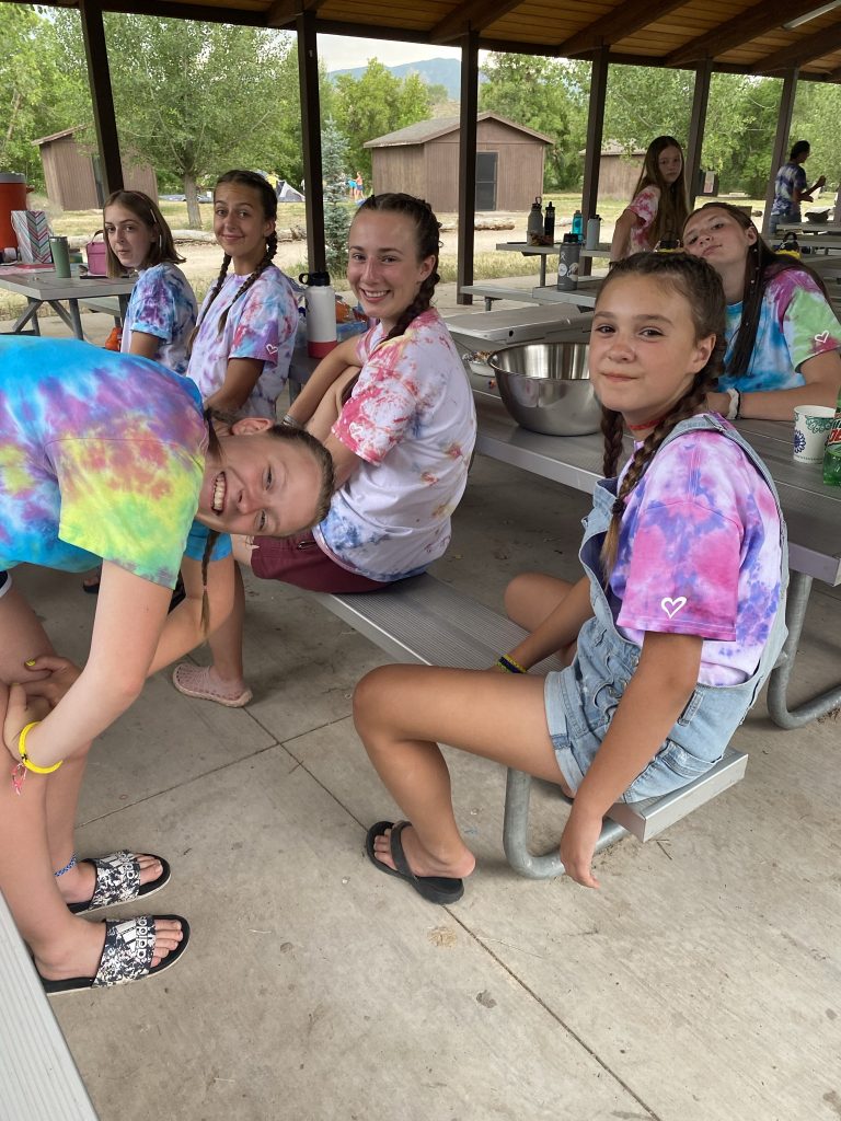 The young women were able to meet before camp to make their tie dye camp shirts. The girls had fun choosing their design and colors and they all ended up with beautiful shirts!