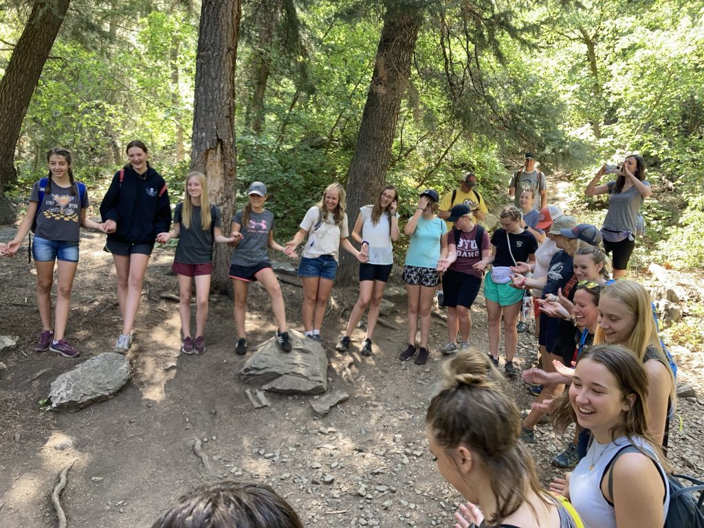 The Young Women went to Camp Zarahemla this year, July 14-17 2021. The camp theme was Hearts United in a Great Work. Our goal was to become more unified as a young women group and have each girl feel loved and included. We first started out hiking Adam’s Canyon and sharing temple stories along the way. We then stopped at a park for lunch and painted rocks to add to the rock path at the Layton temple that is being constructed. The girls were able to participate in various activities at camp, including a big slip-n-slide, a break-out box, archery, and string art. One day we all went to East Canyon and the girls were able to use the inflatable obstacle course and swim. Skits and testimony meeting were a favorite part of camp and really brought the girls closer to each other. We are grateful to our camp director, Heather Lyman, for all of her hard work making camp such a success. We are also grateful to the Priesthood leaders who came out each day to be with us. The girls were amazing and truly sought out the ‘one’ every day. We love them and are so grateful for their examples and testimonies.
